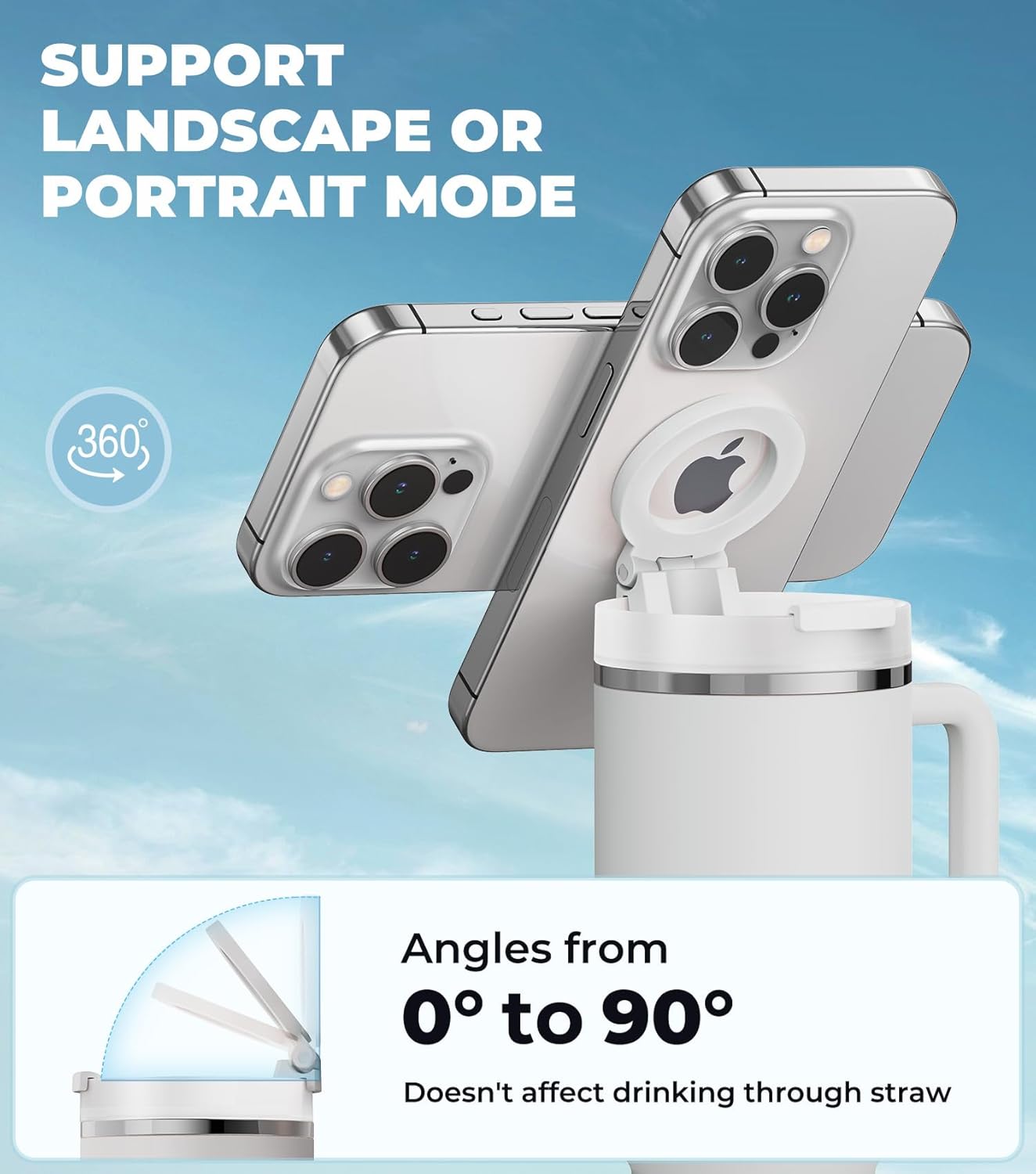 For Stanley Cup Phone Holder with Magnetic Phone Holder for Quencher H2.0 FlowState Tumbler Foldable Stand Water Bottle for Stanley Cup Accessories Hands Free for All Phones Cases